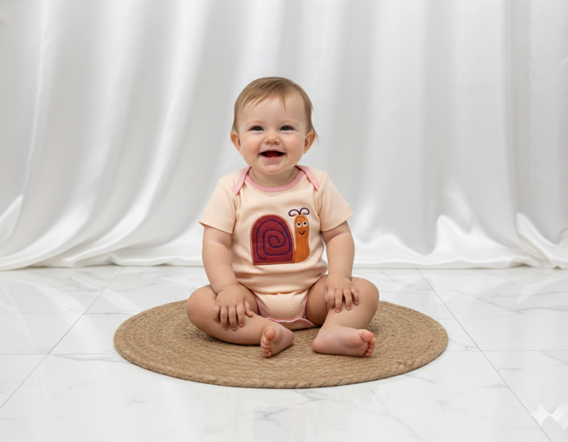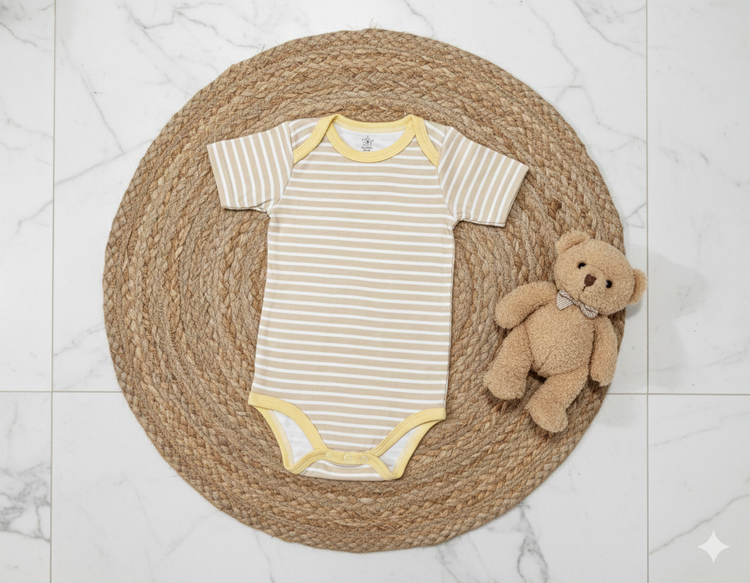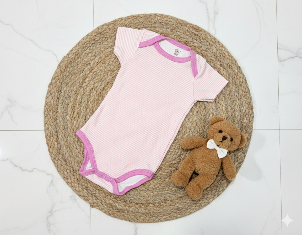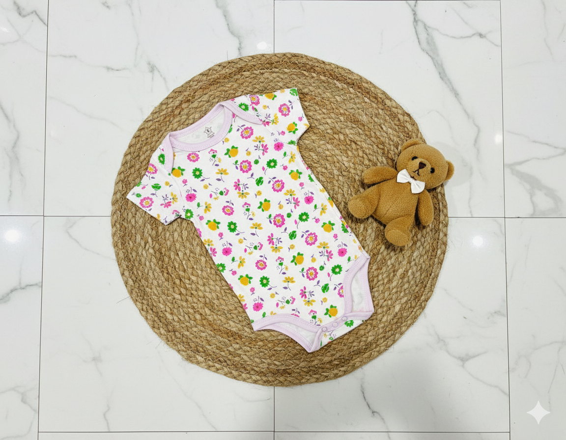بادی زیردکمه وارداتی آستین کوتاه نوزادی کیفیت عالی ۳ تا ۶ ماه سیسمونی برند tedmimak