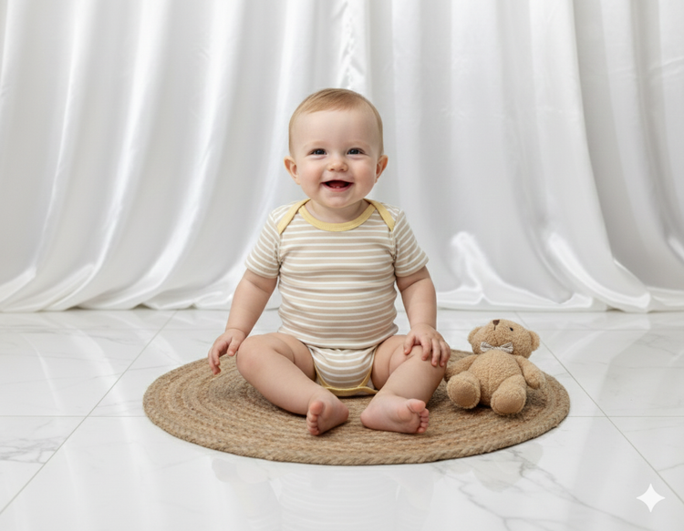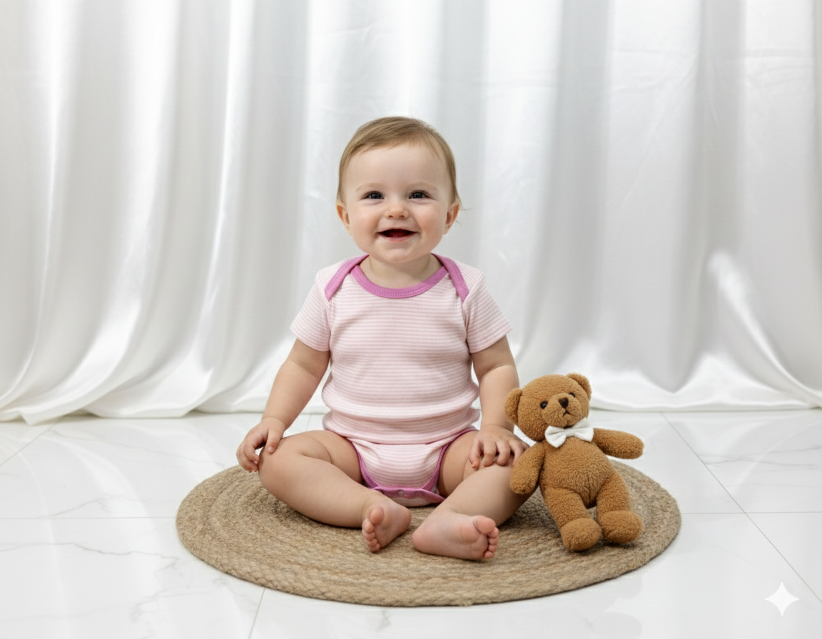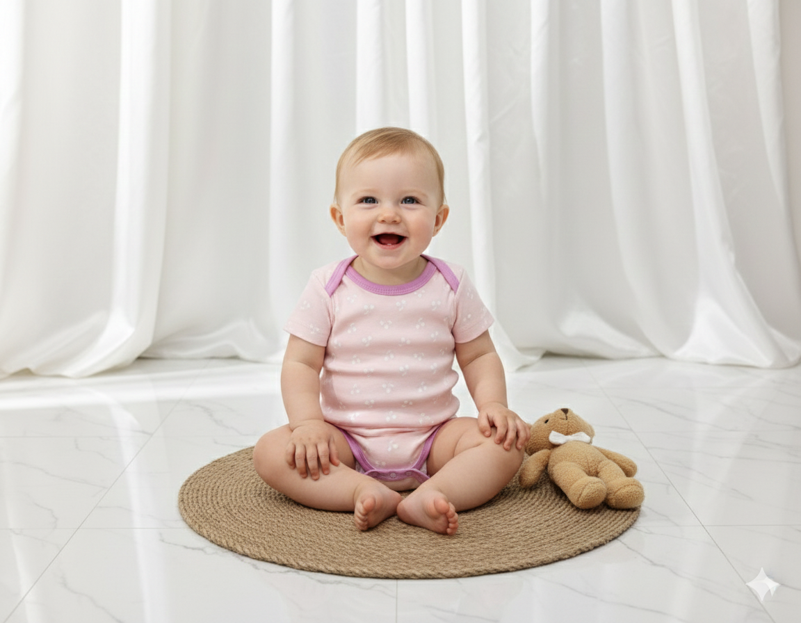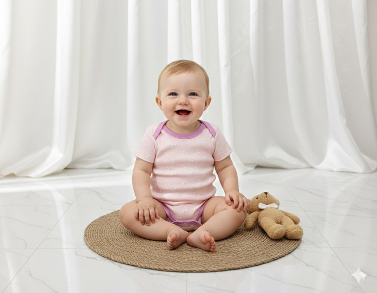 بادی زیردکمه وارداتی آستین کوتاه نوزادی کیفیت عالی ۳ تا ۶ ماه سیسمونی برند tedmimak